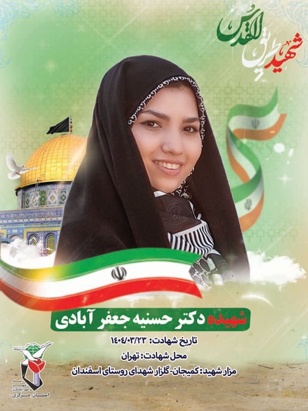 در پی حملات ناجوانمردانه رژیم صهیونیستی در سحرگاه ۲۳ خرداد، «حسنیه جعفرآبادی» دانشجوی دکترای دامپزشکی ورودی ۹۷ (اینترن ترم آخر) دانشگاه آزاد اسلامی واحد کرج به همراه همسرشان در محل سکونتشان در تهران به شهادت رسیده و به دیدار معبود شتافتهاند.